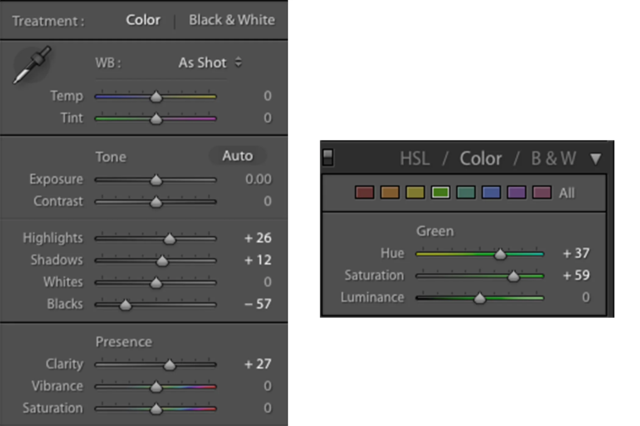 Then I brought it back in Lightroom and did my usual thing, brought the blacks down, slightly boosted the clarity, and messed with the saturation and hue of the greens.